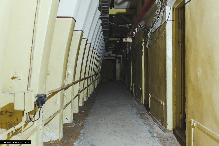Далее проходим сквозь длинную галерею к защитным дверям на входе в сооружение.