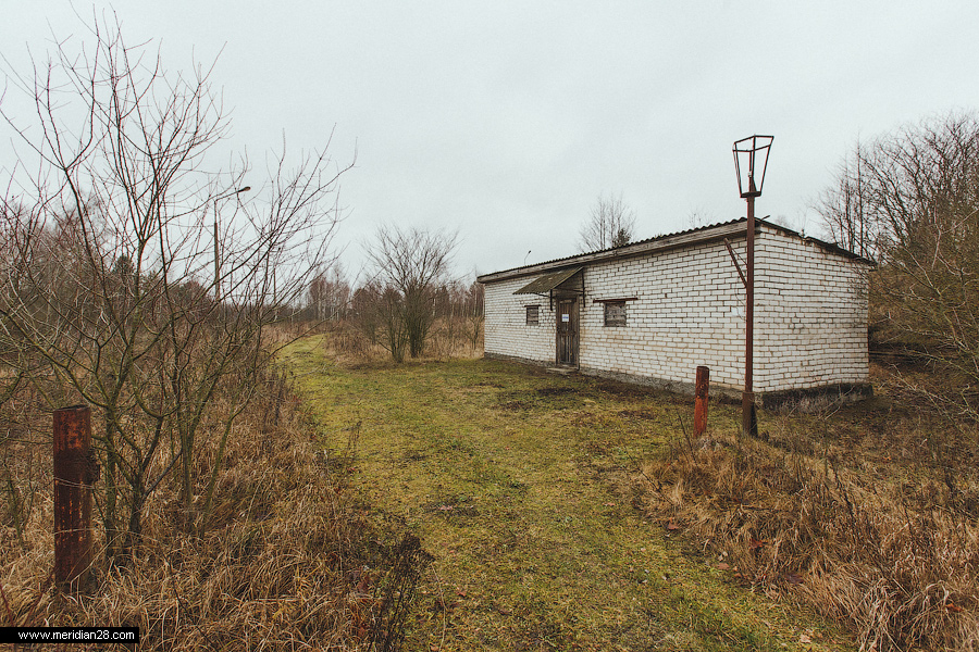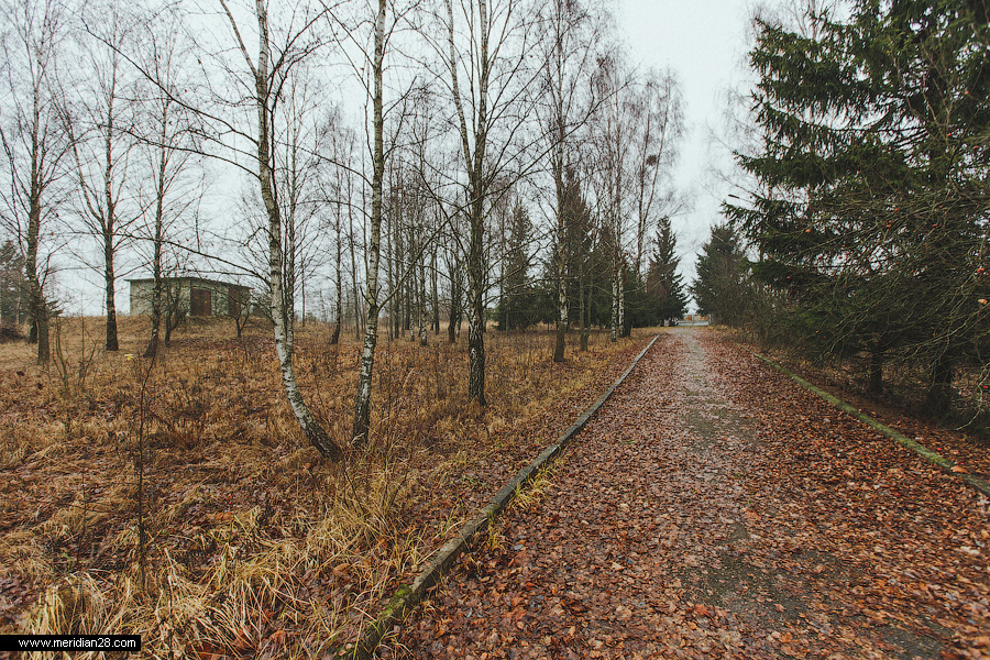 Мимо виднеющейся слева трансформаторной подстанции направляемся на выход по усыпанной листьям дороге, которую уже много лет не убирают солдаты.