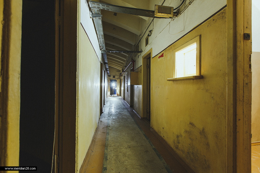 Следующая из комнат управления. В коридоре заметна часть системы пожаротушения объекта.